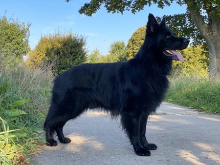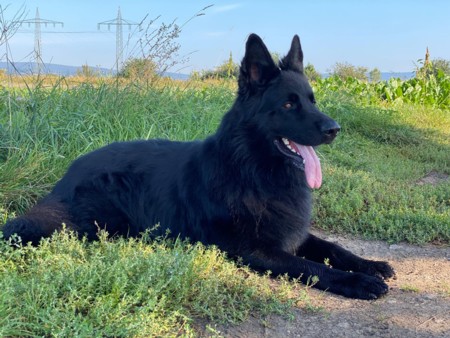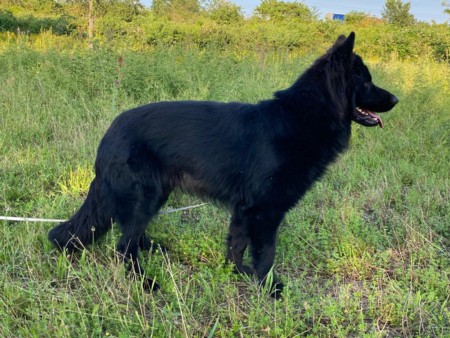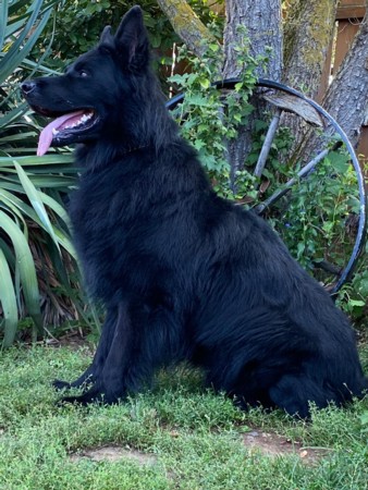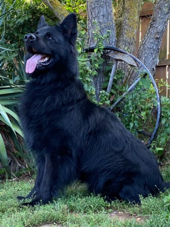 Diesel ist ein wunderschöner Altdeutscher schwarzer Schäferhund Rüde aus alten DDR Linien. Er ist HD-frei, ED-frei, DM n/n, MDR 1 n/n, Zwergwuchs n/n und reinerbig Langhaar. Er ist sehr gross und knochenstark, absolut geradem Rücken. Sein Stockmass ist 68 cm. Er hat ein sehr schönes langes Fell. Diesel ist deckerfahren und steht passenden Hündinnen zum decken zur Verfügung. Die Kontaktaufnahme wird ausschliesslich über uns abgewickelt und erst nach Prüfung aller Angaben weitergegeben.