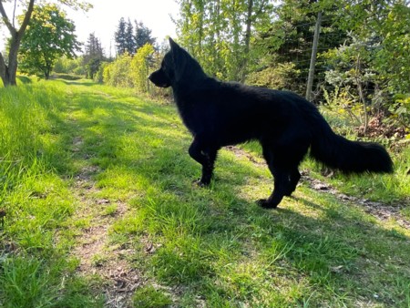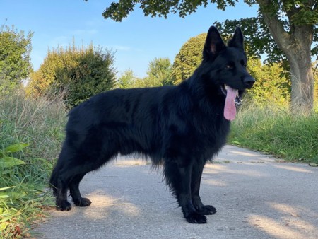 Ekansh ist ein sehr schön aufgebauter schwarzer Altdeutscher Schäferhund Rüde mit absolut geradem Rücken; Stockmass 62 cm. Er ist HD-frei, ED-frei, Keilwirbel frei, Dm n/n MDR1 n/n Zwergenwuchs n/n , reinerbig Langhaar. Ekansh ist deckerfahren und steht passenden Hündinnen zum decken zur Verfügung. Die Kontaktaufnahme wird ausschliesslich über uns abgewickelt und erst nach Prüfung aller Angaben weitergegeben.